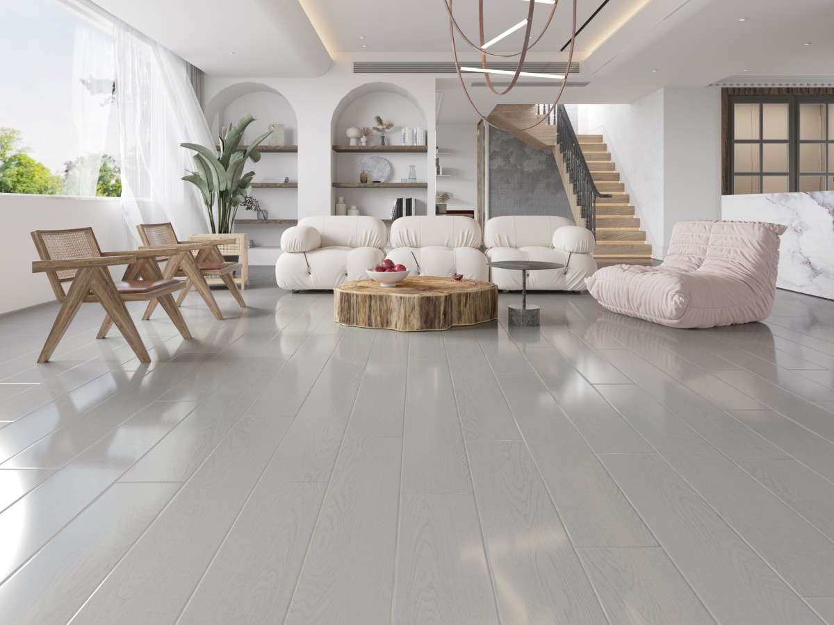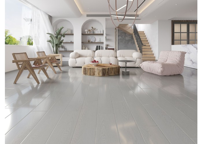 The 12mm thick construction is finished with a luxurious high piano gloss surface, creating an almost “wet” look that beautifully refracts natural light. This striking high-gloss finish enhances the depth and character of the floor, delivering a sleek, sophisticated appearance synonymous with premium gloss flooring.